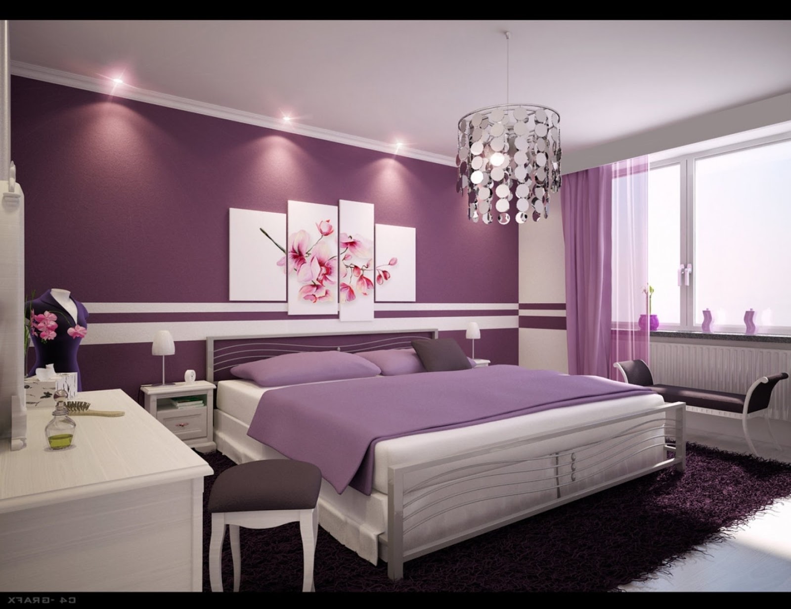 6. don't forget to make your room accessories like panels and lighting and chandelier complete appearance upscale room, choose Lavender color enters colors but need not be in purple.